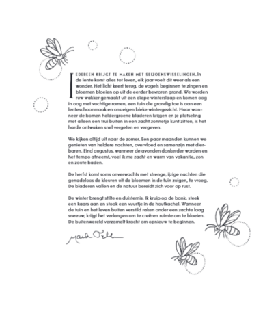 • Vier seizoenen: Het boek is opgedeeld in de lente, zomer, herfst en winter, elk met hun eigen unieke sfeer.